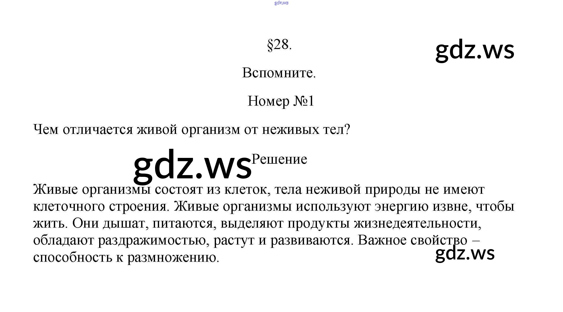 Готовый ответ Вспомните §28. Обмен веществ — главный признак жизни - Биологии 5 класс Пасечник Учебник Линия жизни ФГОС