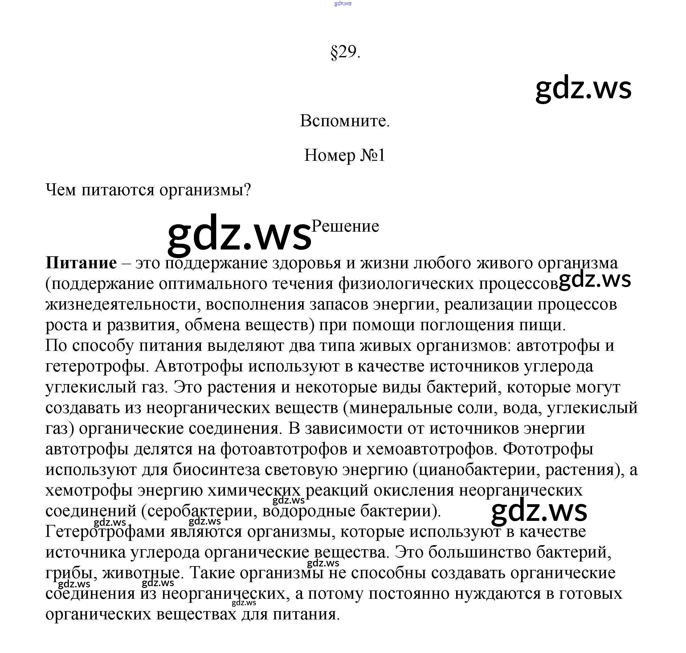 Готовый ответ Вспомните §29. Питание бактерий, грибов и животных - Биологии 5 класс Пасечник Учебник Линия жизни ФГОС