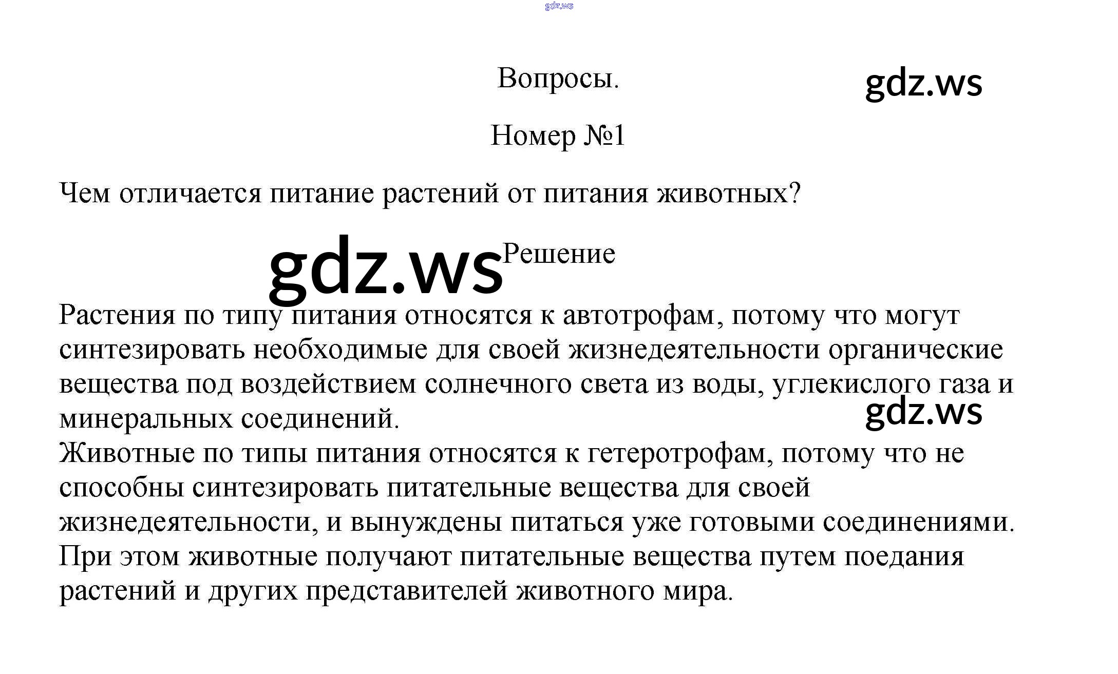 Готовый ответ Вопросы §30. Питание растений. Удобрения - Биологии 5 класс Пасечник Учебник Линия жизни ФГОС