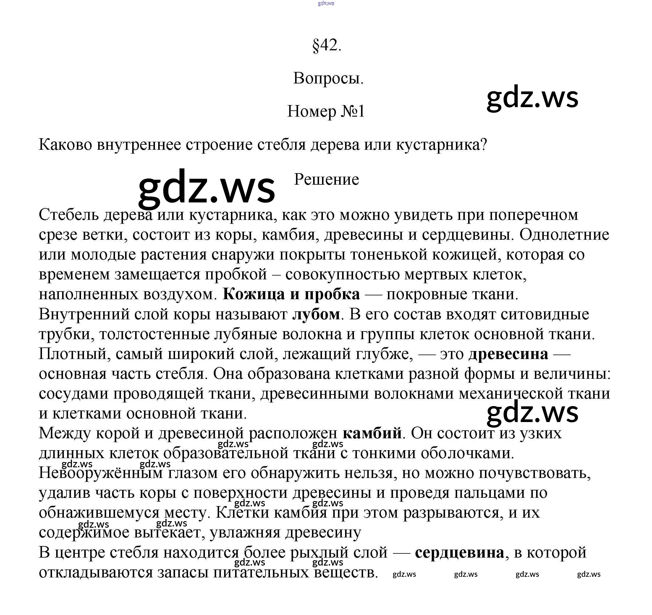 Готовый ответ Вопросы §42. Строение стебля - Биологии 5 класс Пасечник Учебник Линия жизни ФГОС