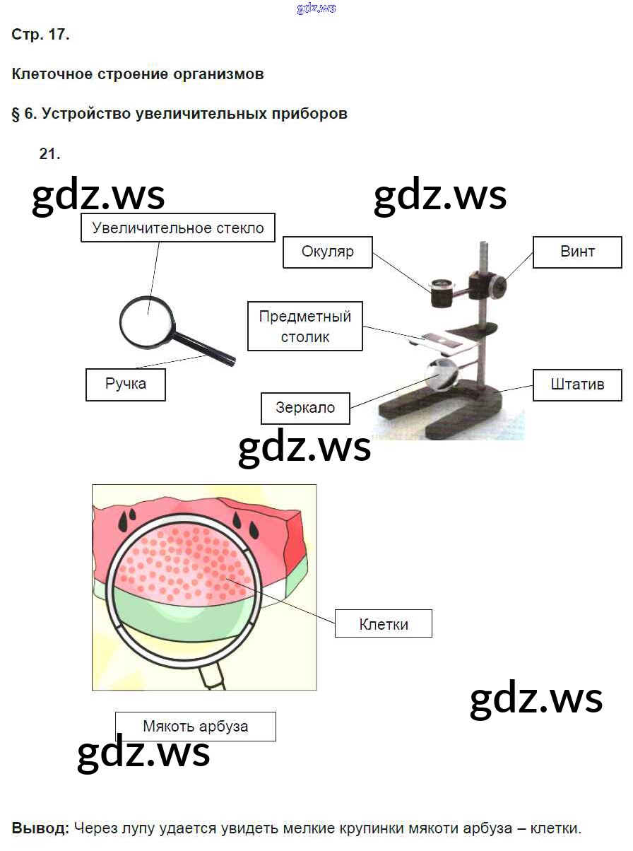 Готовый ответ § 6. Устройство увеличительных приборов - Биологии 5 класс Пасечник Рабочая тетрадь Вертикаль ФГОС