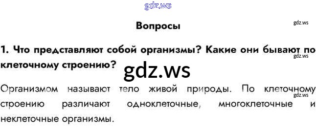 Готовый ответ Вопросы §9. Организм — единое целое - Биологии 5 класс Пасечник Учебник Линейный курс ФГОС