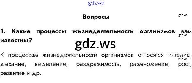 Готовый ответ Вопросы §10. Жизнедеятельность организмов - Биологии 5 класс Пасечник Учебник Линейный курс ФГОС