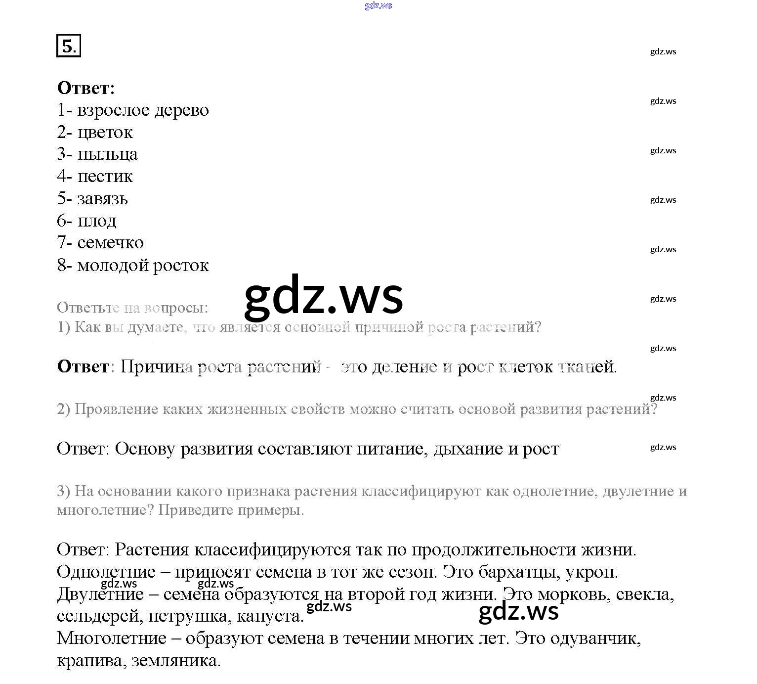Готовый и полный ответ к Страницы - Биологии 6 класс Пасечник Рабочая тетрадь Линия жизни ФГОС