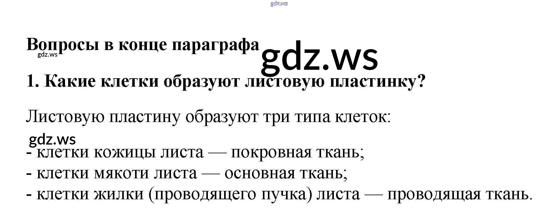 Готовый ответ Вопросы в конце параграфа §7. Клеточное строение листа - Биологии 6 класс Пасечник Учебник Вертикаль ФГОС