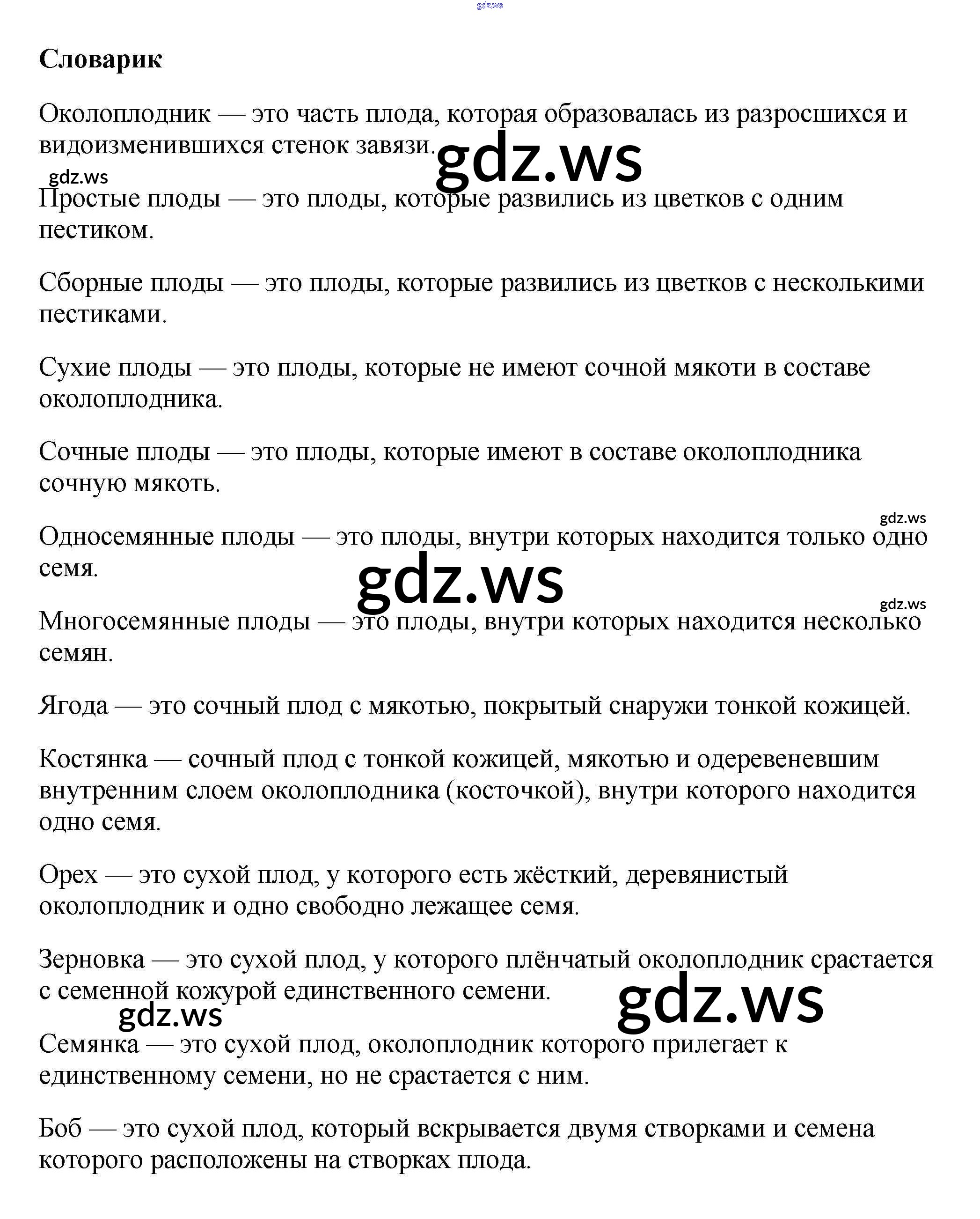 Готовый ответ Словарик §13. Плоды - Биологии 6 класс Пасечник Учебник Вертикаль ФГОС