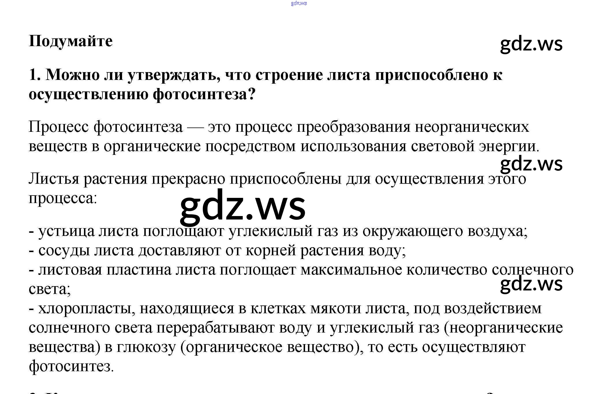 Готовый и полный ответ к Подумайте §16. Фотосинтез - Биологии 6 класс Пасечник Учебник Вертикаль ФГОС