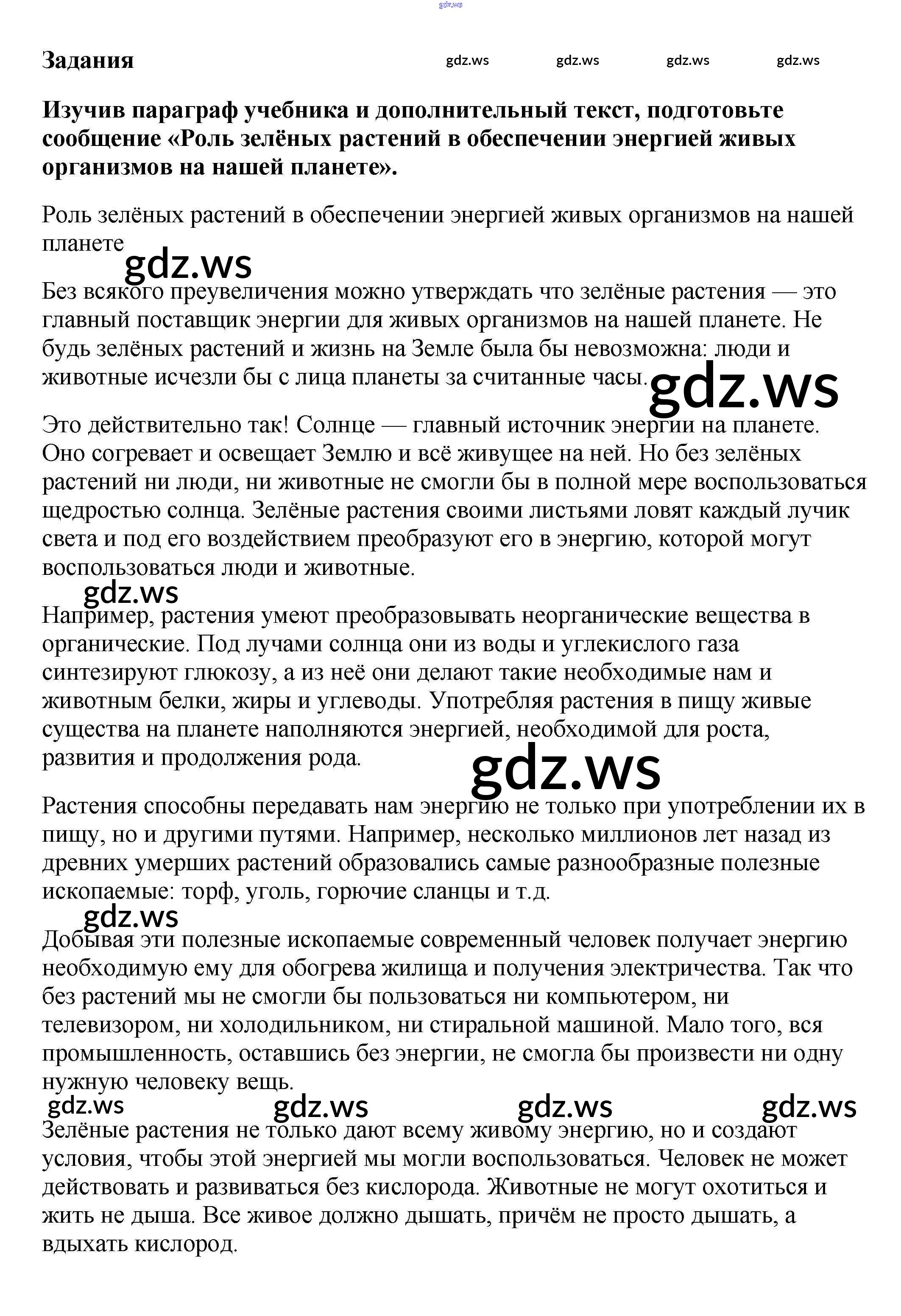 Готовый ответ Задания §16. Фотосинтез - Биологии 6 класс Пасечник Учебник Вертикаль ФГОС