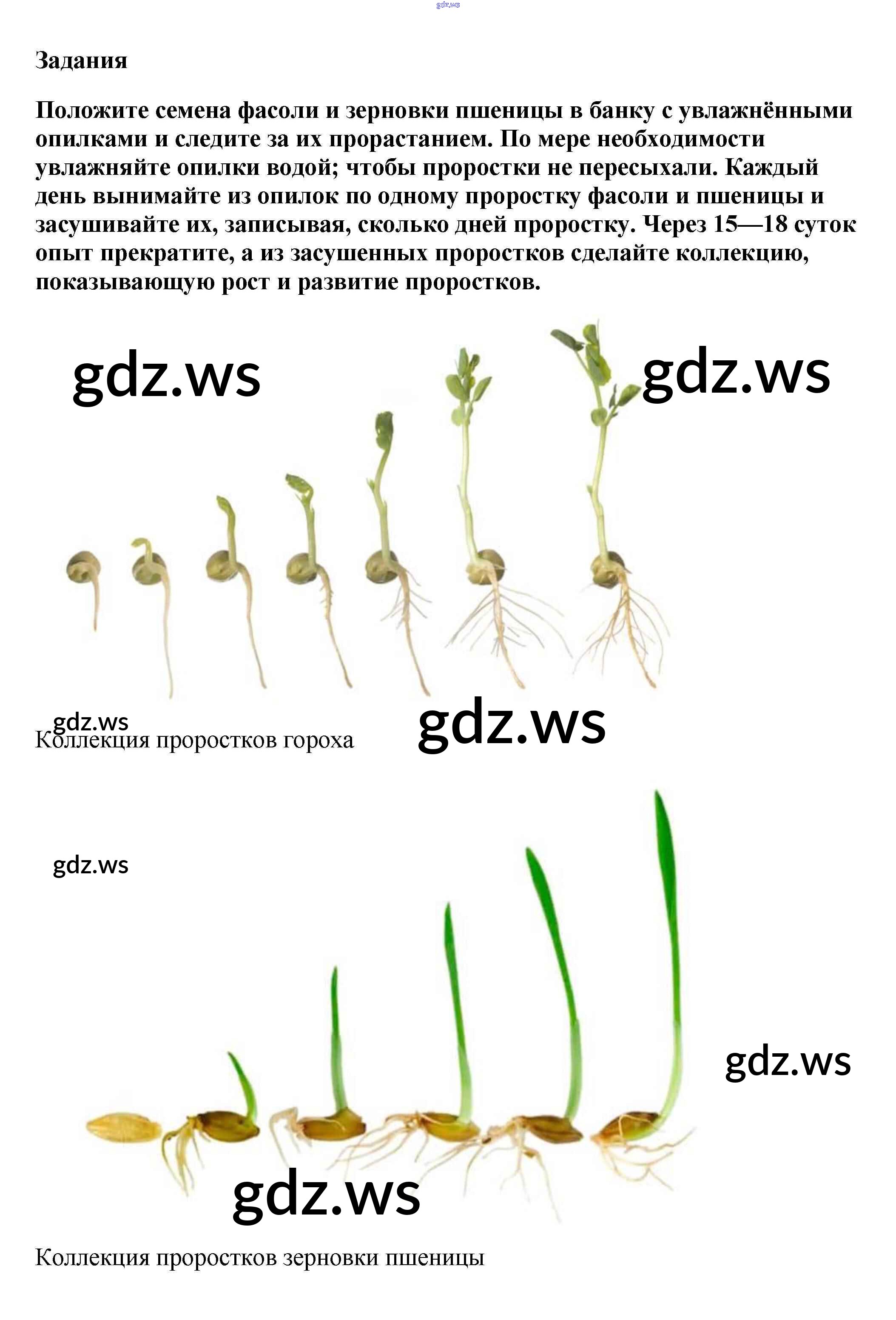 Готовый ответ Задания §20. Прорастание семян - Биологии 6 класс Пасечник Учебник Вертикаль ФГОС