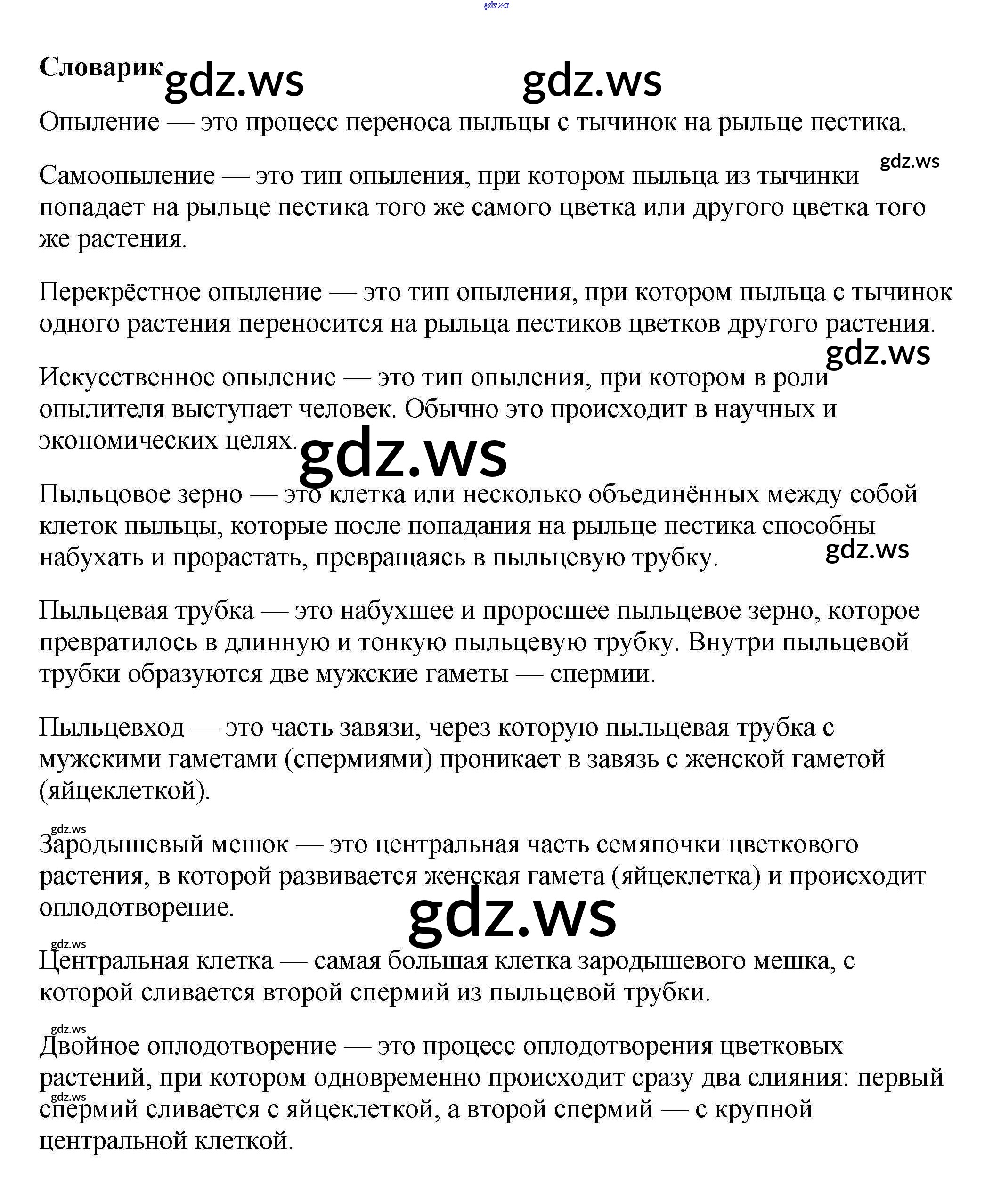 Готовый и полный ответ к Словарик §24. Половое размножение покрытосеменных растений - Биологии 6 класс Пасечник Учебник Вертикаль ФГОС