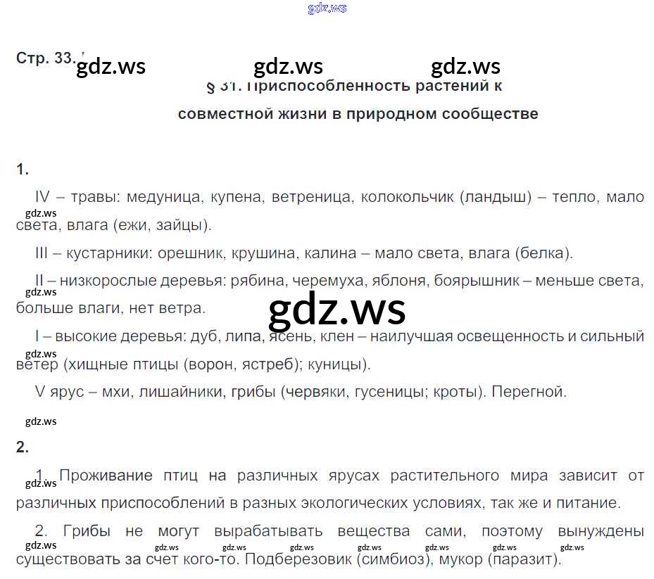Готовый и полный ответ к Часть 2. Страницы - Биологии 6 класс Пономарева Рабочая тетрадь Алгоритм успеха ФГОС