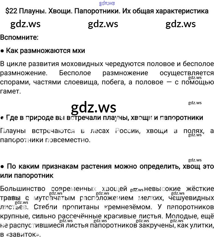 Готовый и полный ответ к §22. Плауны. Хвощи. Папоротники - Биологии 6 класс Пономарева Учебник Алгоритм успеха ФГОС