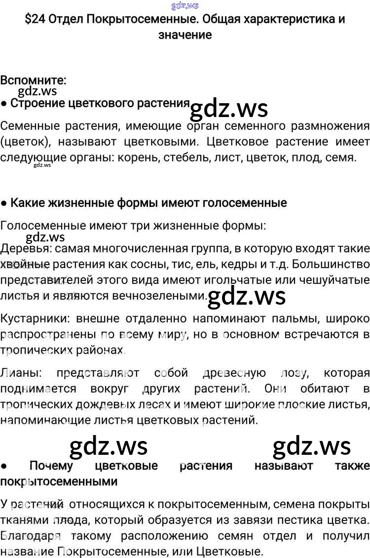 Готовый и полный ответ к §24. Отдел Покрытосеменные. Общая характеристика и значение - Биологии 6 класс Пономарева Учебник Алгоритм успеха ФГОС