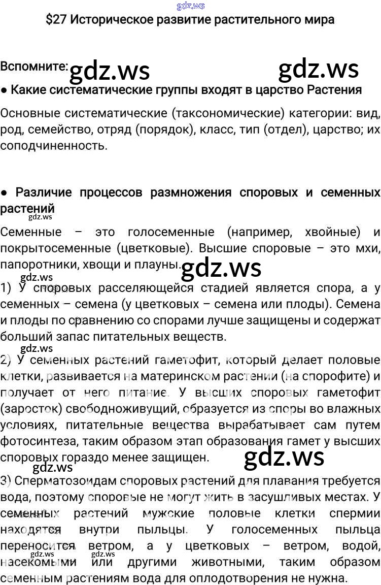 Готовый и полный ответ к §27. Историческое развитие растительного мира - Биологии 6 класс Пономарева Учебник Алгоритм успеха ФГОС