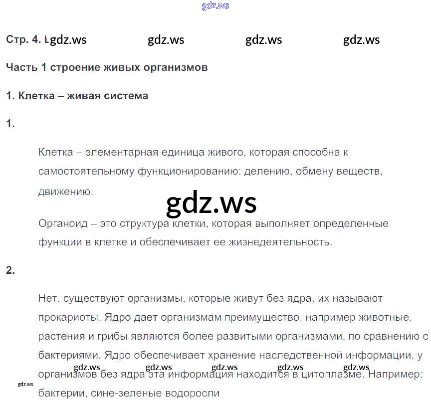 Готовый и полный ответ к Страницы - Биологии 6 класс Сонин Рабочая тетрадь Живой организм ФГОС
