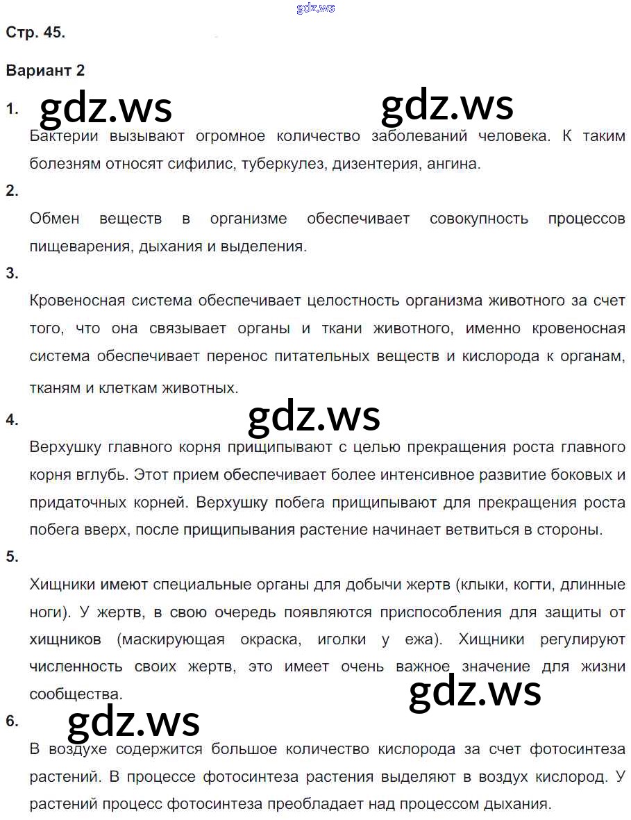 Готовый и полный ответ к Страницы - Биологии 6 класс Сухорукова Тетрадь-экзаменатор Сферы ФГОС