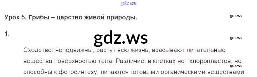 Готовый и полный ответ к §5. Грибы - царство живой природы Тетрадь 2016 - Биологии 7 класс Пасечник Рабочая тетрадь Линия жизни ФГОС