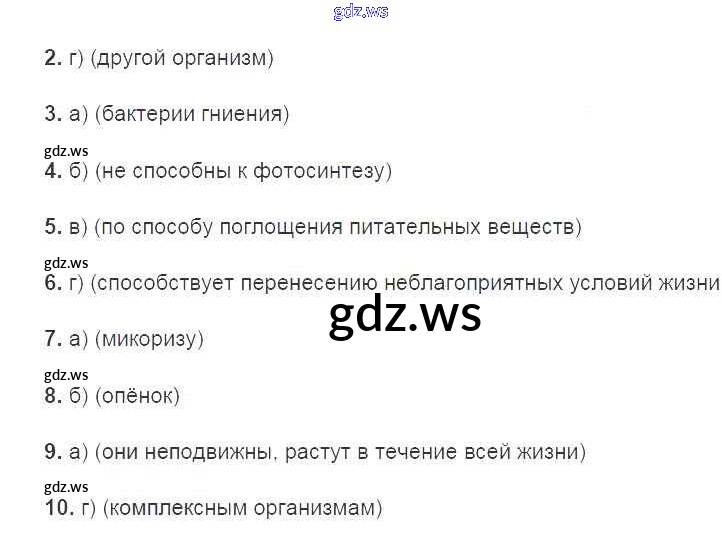 Готовый и полный ответ к Задание 1 Тестовый контроль 2 - Биологии 7 класс Пасечник Рабочая тетрадь Линия жизни ФГОС