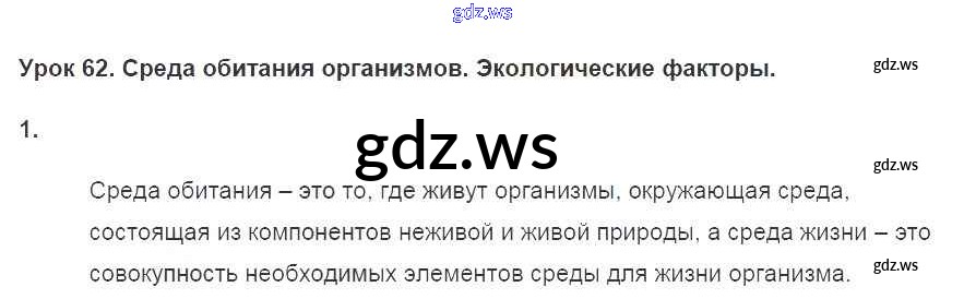 Готовый и полный ответ к §62. Среда обитания организмов Тетрадь 2016 - Биологии 7 класс Пасечник Рабочая тетрадь Линия жизни ФГОС