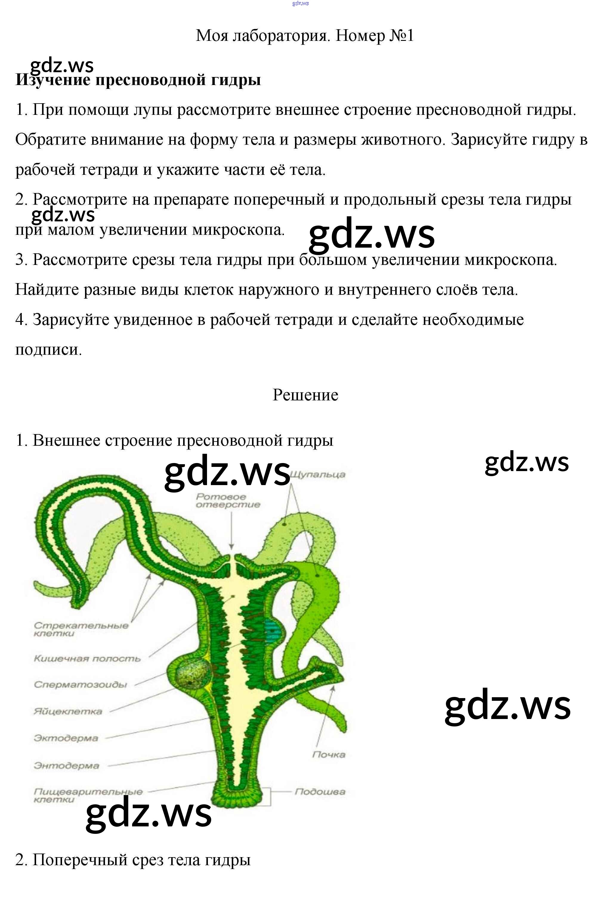 Готовый и полный ответ к Моя лаборатория §7. Тип кишечнополостные - Биологии 7 класс Пасечник Учебник Линия жизни ФГОС