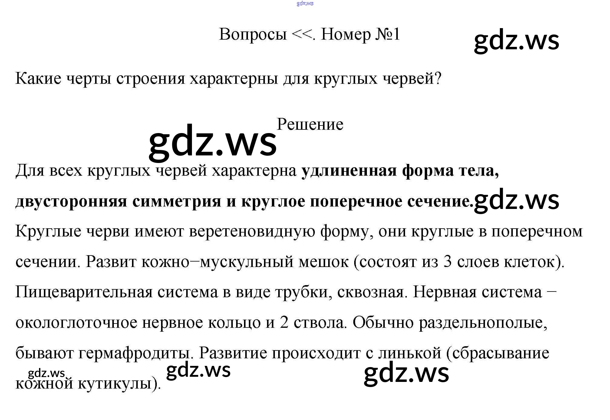 Готовый ответ Вопросы §10. Тип круглые черви и тип кольчатые черви - Биологии 7 класс Пасечник Учебник Линия жизни ФГОС