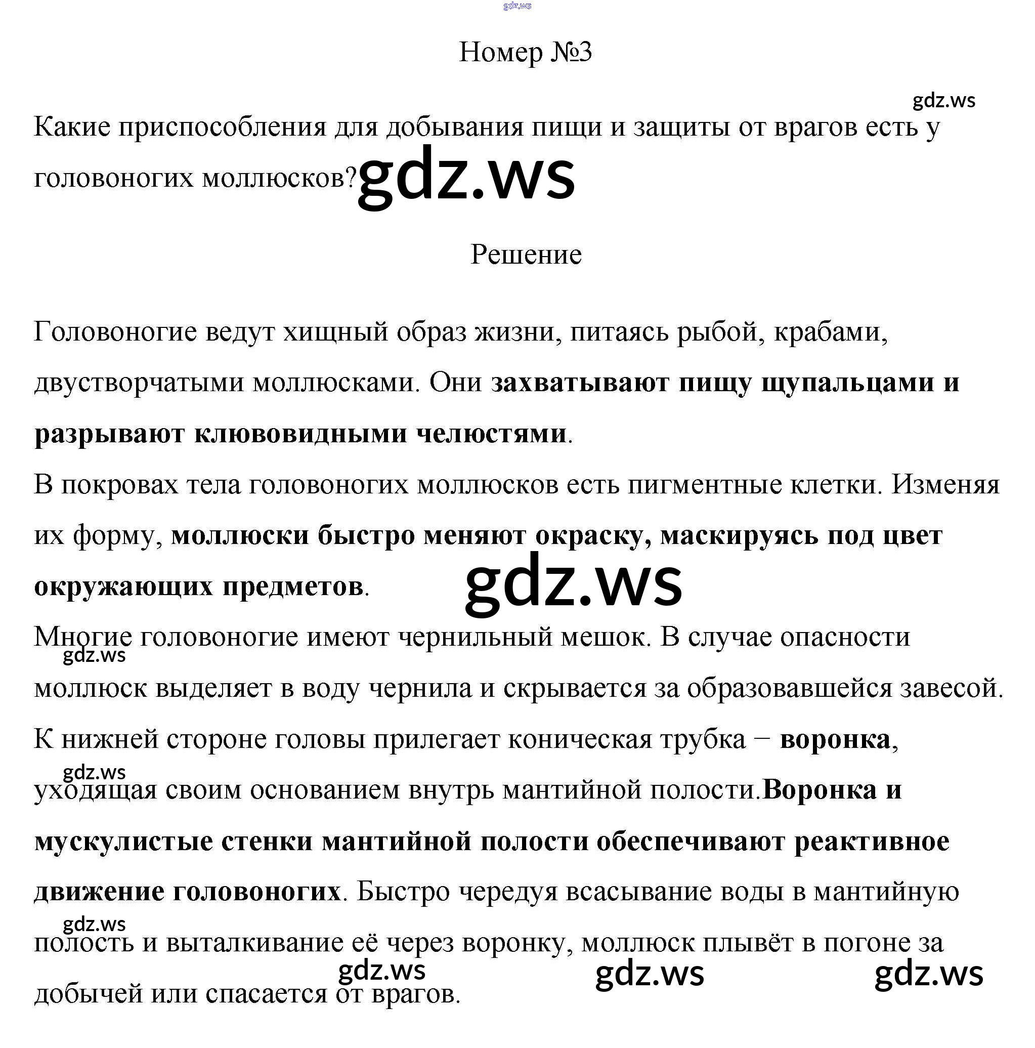 Готовый ответ Вопросы §12. Класс головоногие моллюски - Биологии 7 класс Пасечник Учебник Линия жизни ФГОС