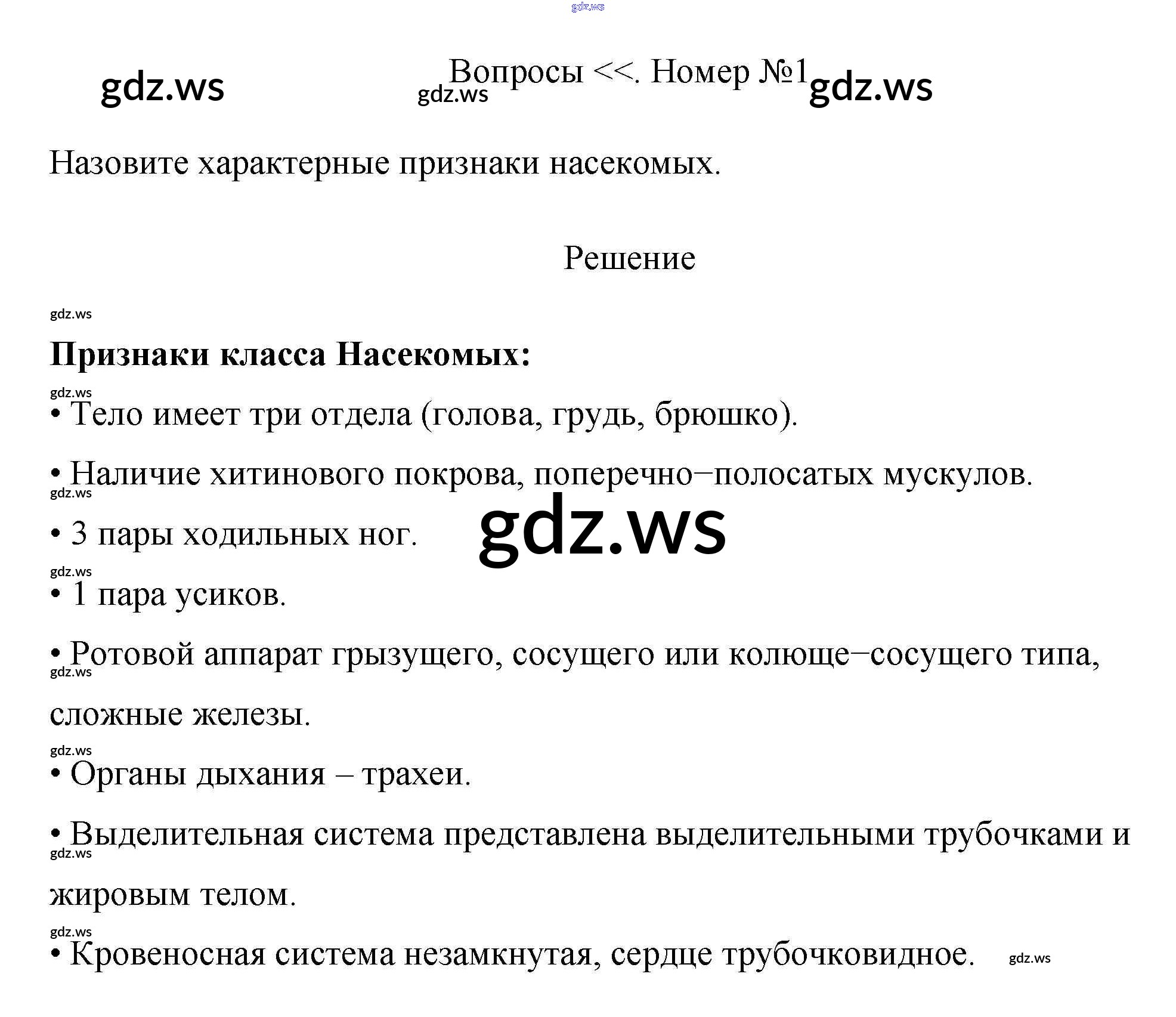 Готовый ответ Вопросы §15. Класс насекомые - Биологии 7 класс Пасечник Учебник Линия жизни ФГОС