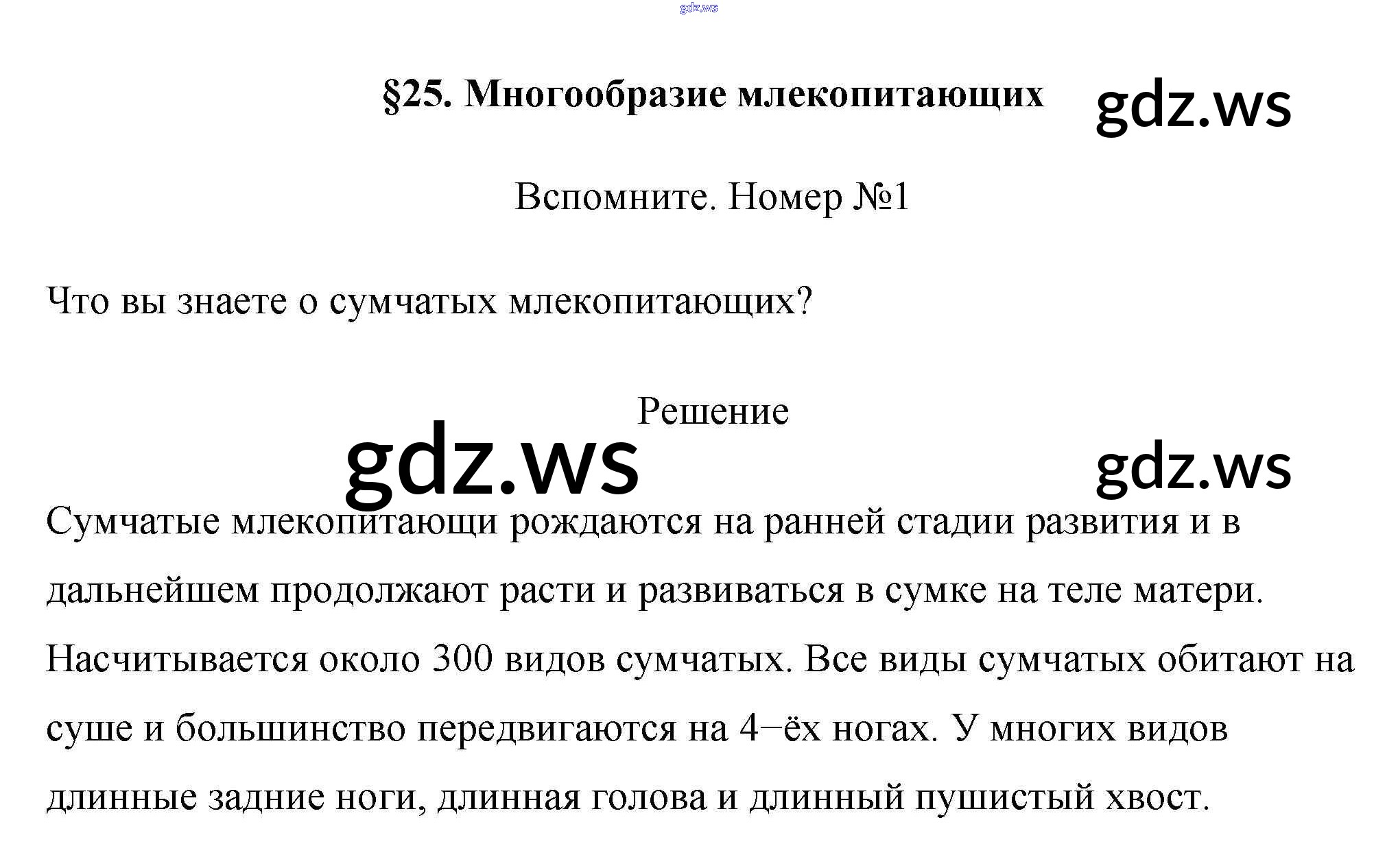 Готовый и полный ответ к Вспомните §25. Многообразие млекопитающих - Биологии 7 класс Пасечник Учебник Линия жизни ФГОС