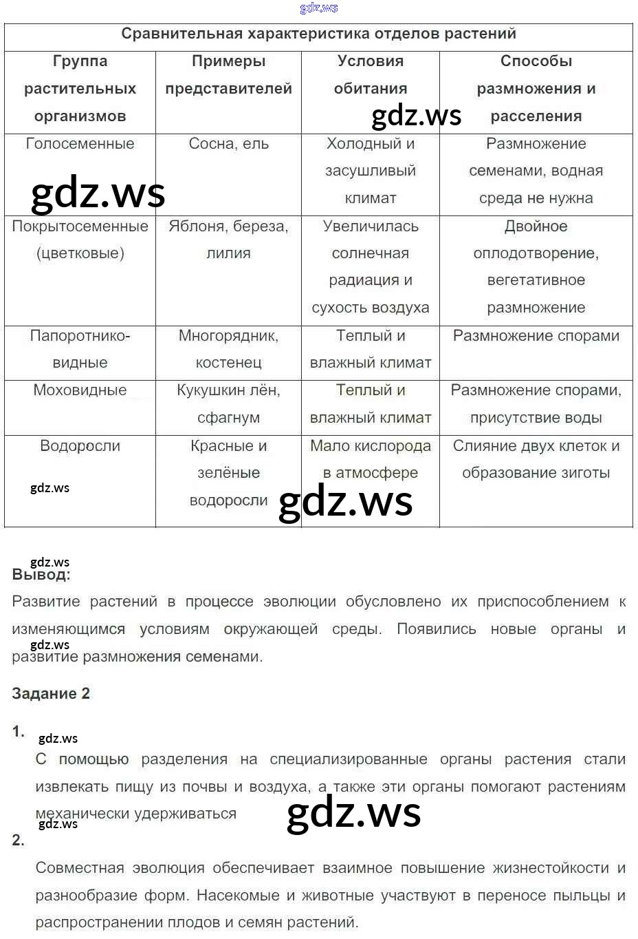 Готовый и полный ответ к Часть 2. Страницы - Биологии 7 класс Пономарева Рабочая тетрадь ФГОС