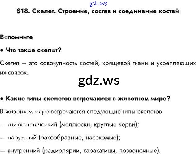 Готовый и полный ответ к §18. Скелет. Строение, состав и соединение костей Глава 4. Опорно-двигательная система - Биологии 8 класс Драгомилов Учебник Алгоритм успеха ФГОС