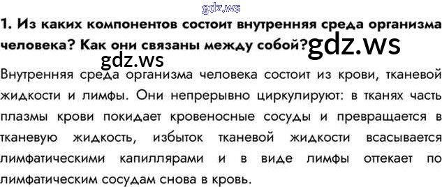 Готовый ответ Вопросы §25. Внутренняя среда. Значение крови и её состав - Биологии 8 класс Драгомилов Учебник Алгоритм успеха ФГОС