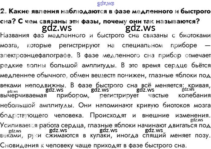 Готовый и полный ответ к Вопросы §54. Биологические ритмы. Сон и его значение - Биологии 8 класс Драгомилов Учебник Алгоритм успеха ФГОС