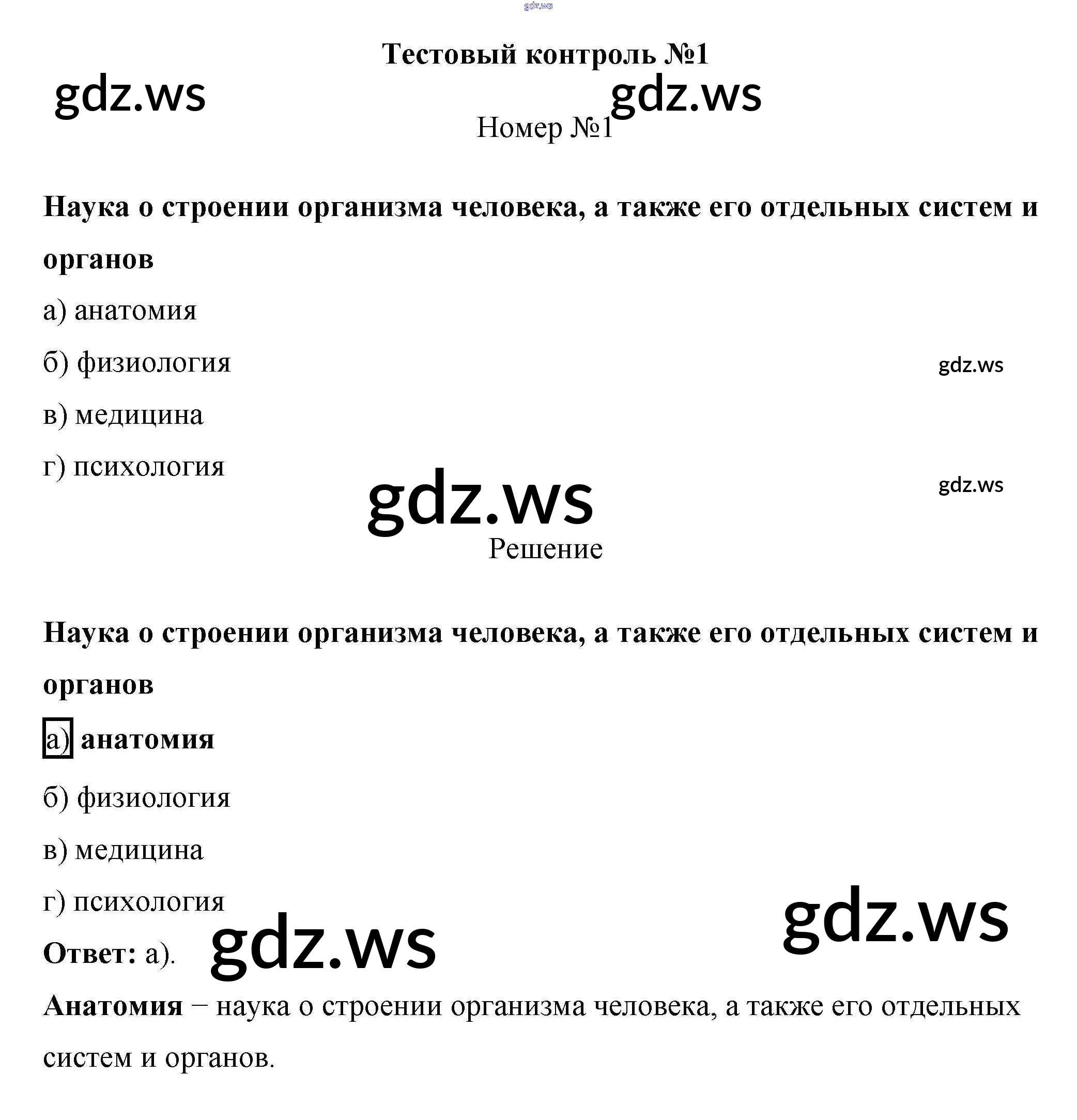 Готовый и полный ответ к Тестовый контроль 1 - Биологии 8 класс Пасечник Рабочая тетрадь Линия жизни ФГОС