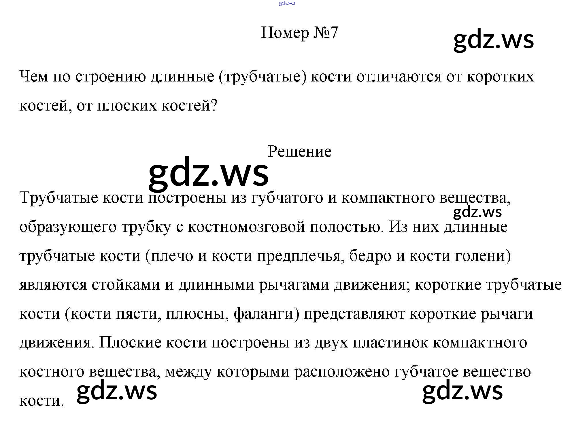 Готовый и полный ответ к §7. Опорно-двигательная система - Биологии 8 класс Пасечник Рабочая тетрадь Линия жизни ФГОС