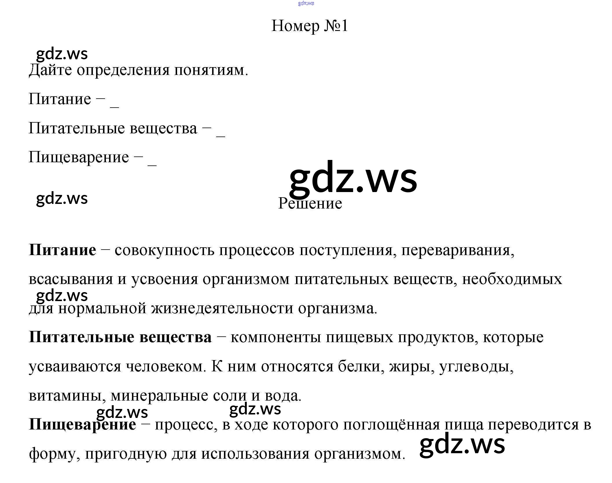 Готовый и полный ответ к §24. Питание и его значение - Биологии 8 класс Пасечник Рабочая тетрадь Линия жизни ФГОС