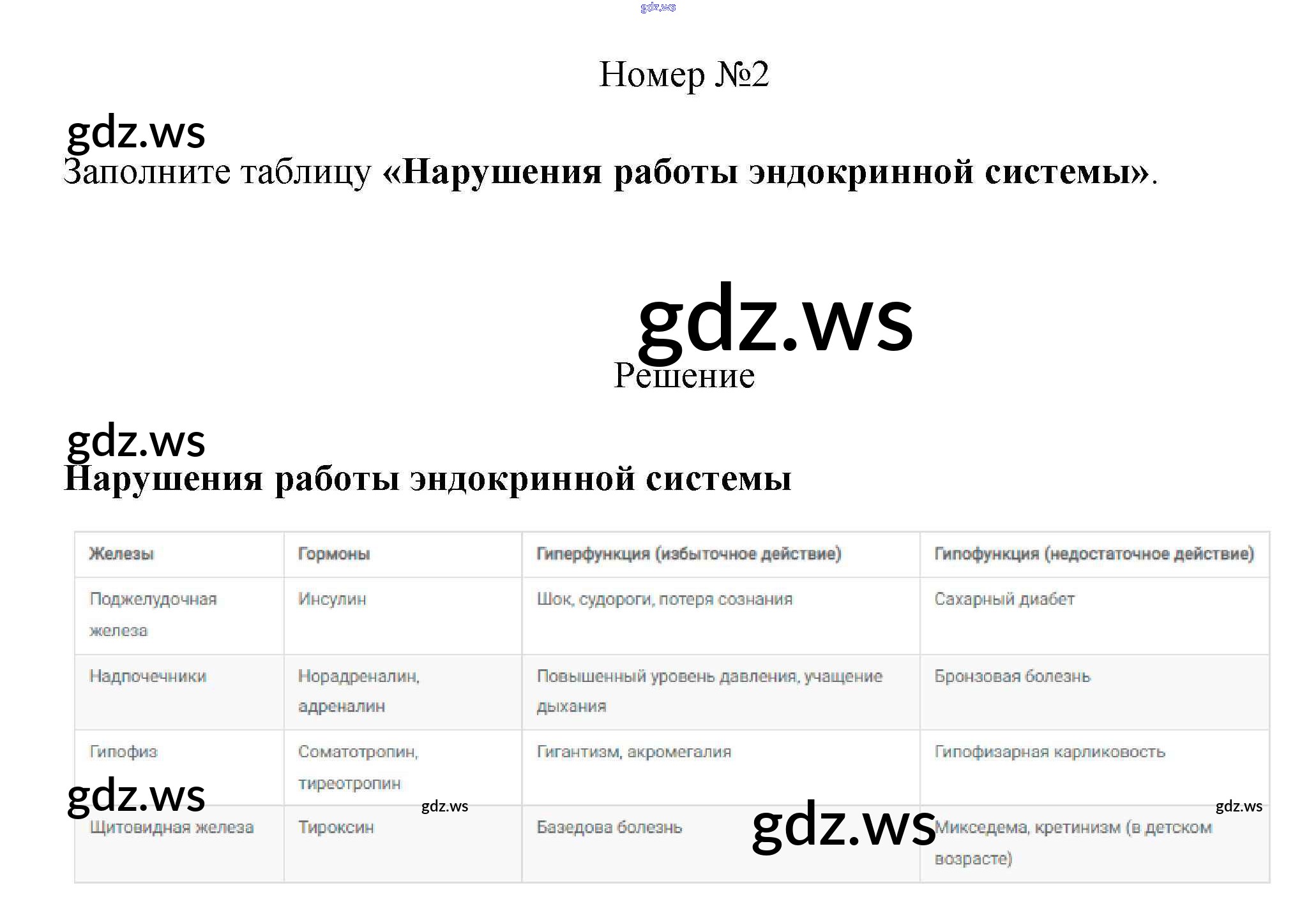 Готовый и полный ответ к §39. Работа эндокринной системы и её значение - Биологии 8 класс Пасечник Рабочая тетрадь Линия жизни ФГОС