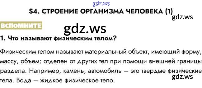 Готовый и полный ответ к Вспомните §4. Строение организма человека (1) - Биологии 8 класс Пасечник Учебник Линия жизни ФГОС