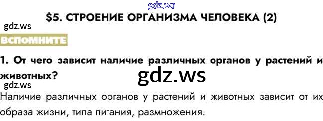 Готовый и полный ответ к Вспомните §5. Строение организма человека (2) - Биологии 8 класс Пасечник Учебник Линия жизни ФГОС