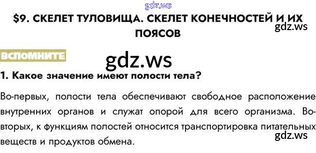Готовый ответ Вспомните §9. Скелет туловища. Скелет конечностей и их поясов - Биологии 8 класс Пасечник Учебник Линия жизни ФГОС