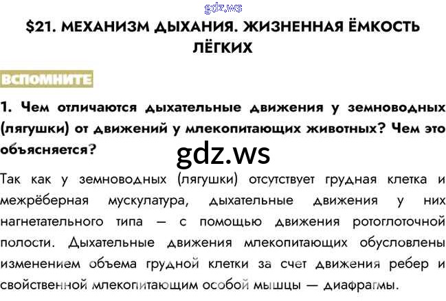 Готовый ответ Вспомните §21. Механизм дыхания. Жизненная ёмкость лёгких - Биологии 8 класс Пасечник Учебник Линия жизни ФГОС