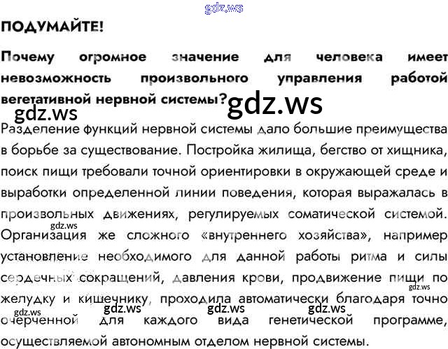 Готовый ответ Подумайте §40. Строение нервной системы и её значение - Биологии 8 класс Пасечник Учебник Линия жизни ФГОС