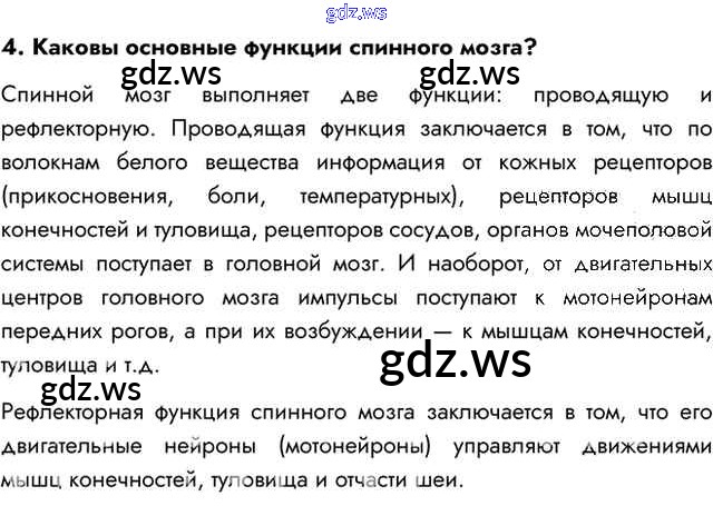 Готовый ответ Вопросы §41. Спинной мозг - Биологии 8 класс Пасечник Учебник Линия жизни ФГОС