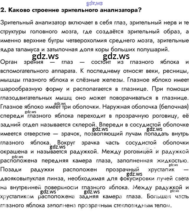 Готовый ответ Вопросы §45. Понятие об анализаторах. Зрительный анализатор - Биологии 8 класс Пасечник Учебник Линия жизни ФГОС