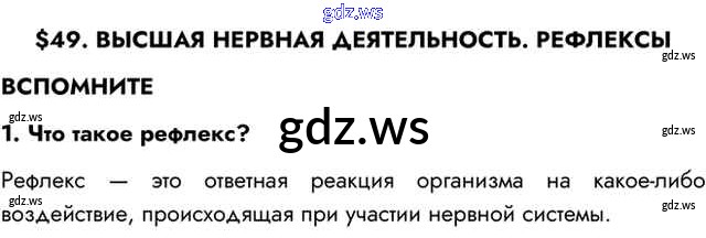 Готовый ответ Вспомните §49. Высшая нервная деятельность. Рефлексы - Биологии 8 класс Пасечник Учебник Линия жизни ФГОС