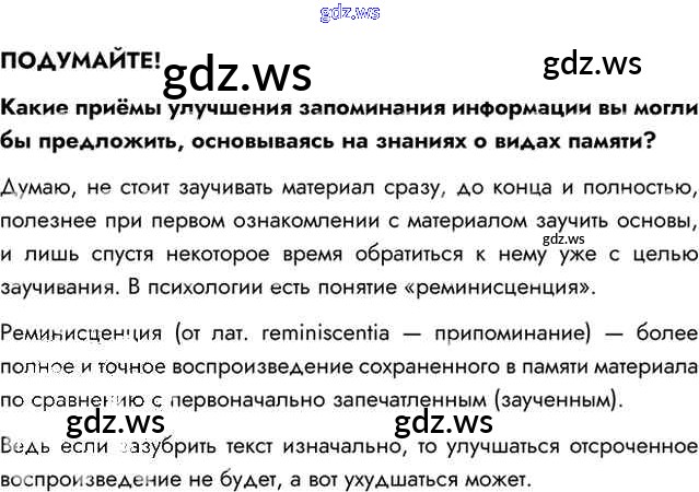 Готовый ответ Подумайте §50. Память и обучение - Биологии 8 класс Пасечник Учебник Линия жизни ФГОС