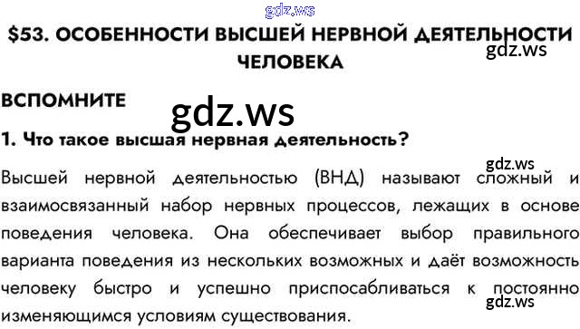 Готовый ответ Вспомните §53. Особенности высшей нервной деятельности человека - Биологии 8 класс Пасечник Учебник Линия жизни ФГОС