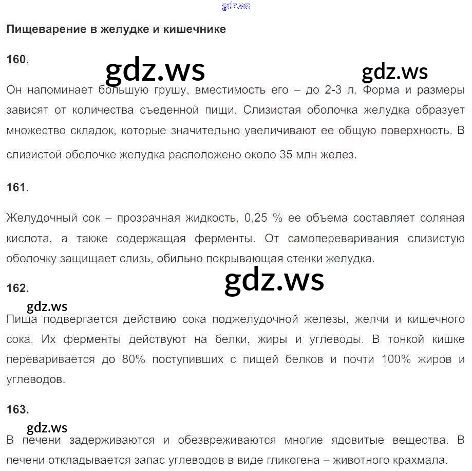 Готовый ответ Глава 8. Пищеварение - Биологии 9 класс Сонин Рабочая тетрадь Вертикаль