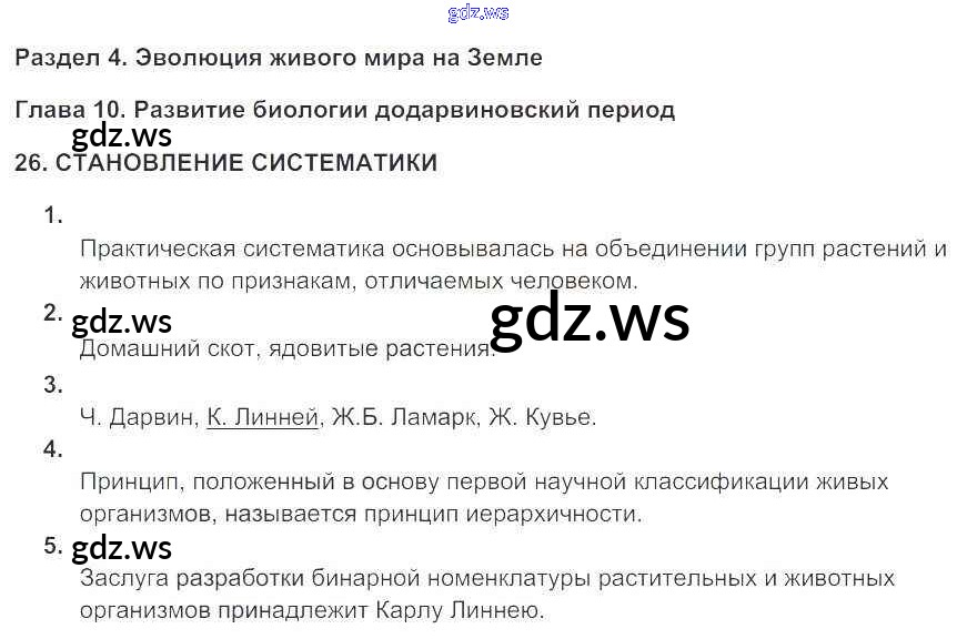 Готовый ответ Глава 10. Развитие биологии в додарвиноский период - Биологии 9 класс Цибулевский Рабочая тетрадь Вертикаль ФГОС