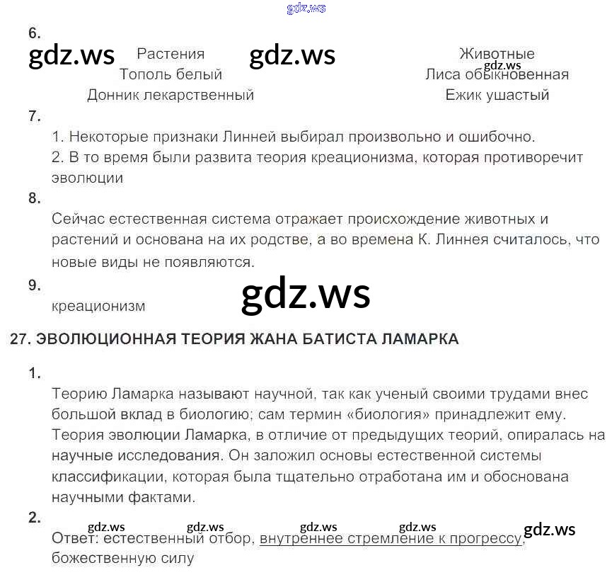 Готовый и полный ответ к Глава 10. Развитие биологии в додарвиноский период - Биологии 9 класс Цибулевский Рабочая тетрадь Вертикаль ФГОС