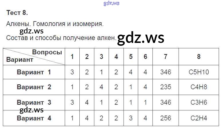 Готовый и полный ответ к Тесты - Химии 10 класс Боровских Тесты УМК ФГОС